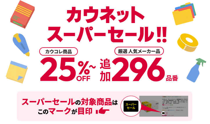 赤字覚悟の全力大特価!【法人限定】 カウネットスーパーセール 厳選人気メーカー品296品番追加 カウコレ商品25%OFF~
