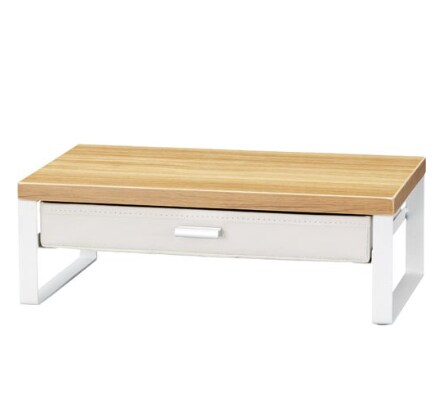 ナチュラルな木目調がやさしい印象のモニター台、引き出しがついており小物もまとめて整理したい人におすすめです。置くだけでかわいらしく、ほかのアイテムともあわせやすいでしょう。