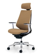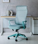 首を支えるヘッドレストを装備したハイバックタイプのチェア。頭から腰まで全体をしっかり支え、長時間快適に座れます。