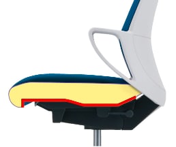 座面に使用しているモールドウレタン素材は、適度な硬さのあるクッションです。柔らかすぎる素材は姿勢が崩れて疲れを感じやすいため、長時間の作業には適度な硬さのあるモールドウレタンがおすすめ。