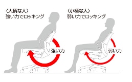 また、ロッキングの強度を調整できるため、背もたれを倒すときに必要な力も自分の好みに合わせて調整できます。背もたれを倒す際に無理な力をかける必要がありません。