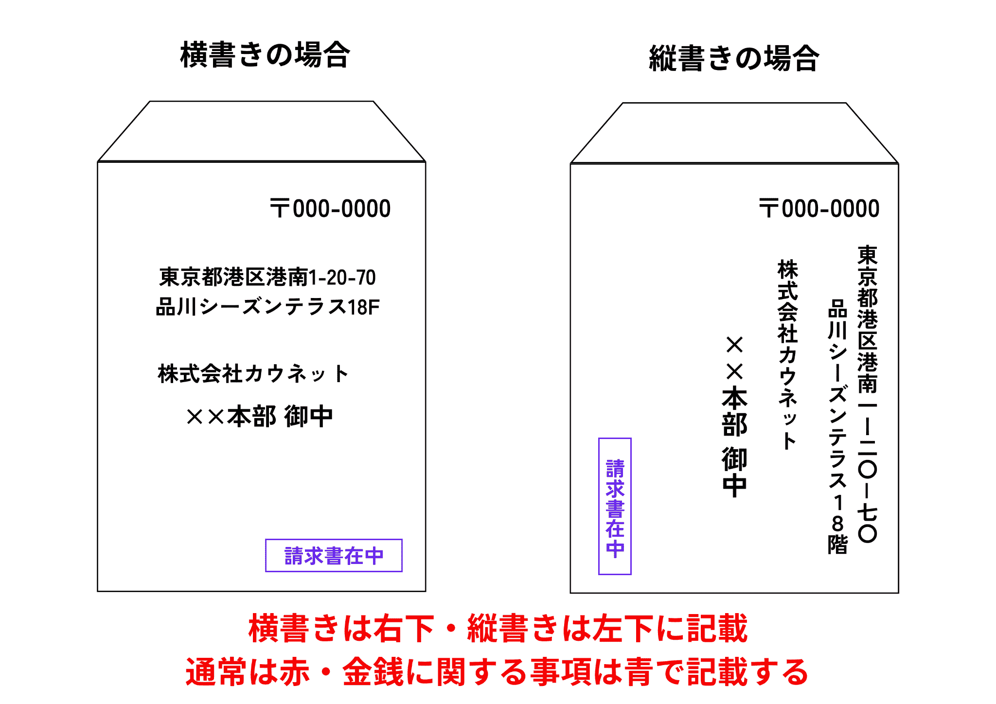 なかでも「請求書在中」や「納品書在中」など、使用頻度が高いと予想されるものはスタンプの活用が便利です。発送先が多い場合でも、効率よく郵送準備を進められます。