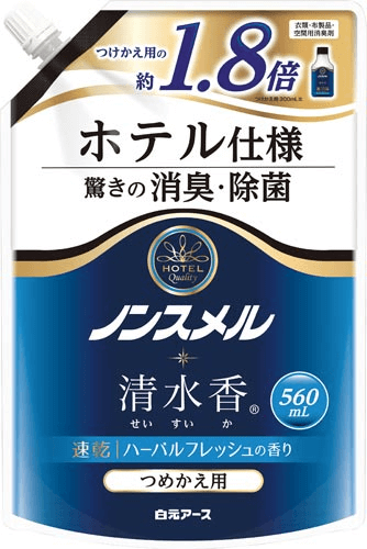 手ごわい臭いの消臭を得意とする商品です。独自技術の消臭効果で、体臭やタバコなどの消えにくい臭いを効率よく消臭できます。