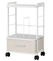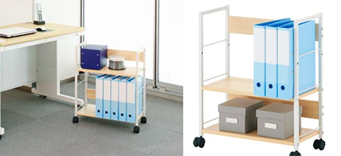 テーブルの下に収めることもできるため、作業スペースを広く保ちながら、必要なアイテムの取り出しが可能。また、キャスター付きで移動も簡単です。