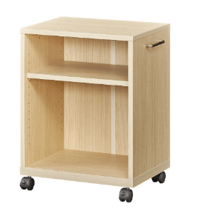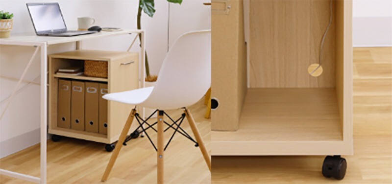 白井産業の木製デスク下ワゴンは、シンプルなデザインと優しい色合いでどんなインテリアにも調和します。