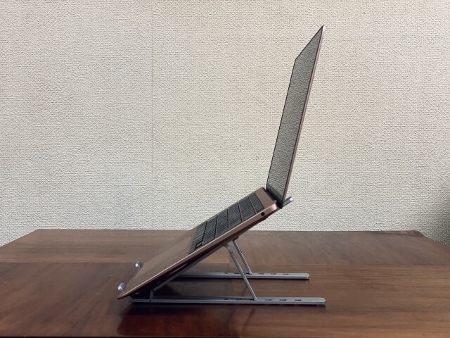 8段階の角度調整付きで、自分に合った角度に調整可能なパソコンスタンドです。