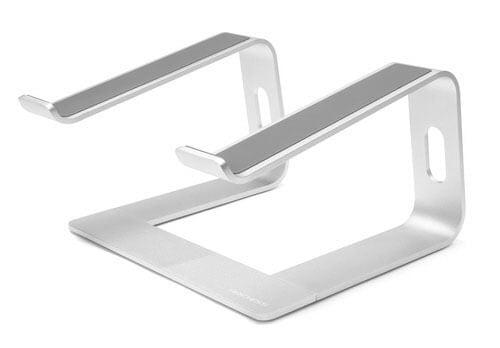 ノートパソコンやタブレット、スマホなどが2つ置ける縦置きタイプのスタンドで、Mac miniやMacBookの他に外付けキーボードにも対応できます。