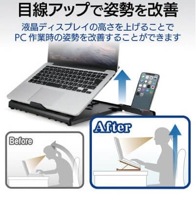 ノートパソコンを使う場合、デスク上にそのまま置いて作業すると熱がこもることもあります。