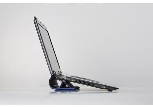 ノートパソコンの底面に、わずかな幅で取り付け可能な、装着折りたたみ式パソコンスタンドです。