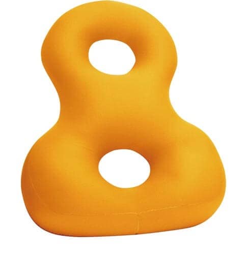 8の字をイメージしたクッション。整形医学で腰に優しい背骨のS字形状をサポート |