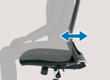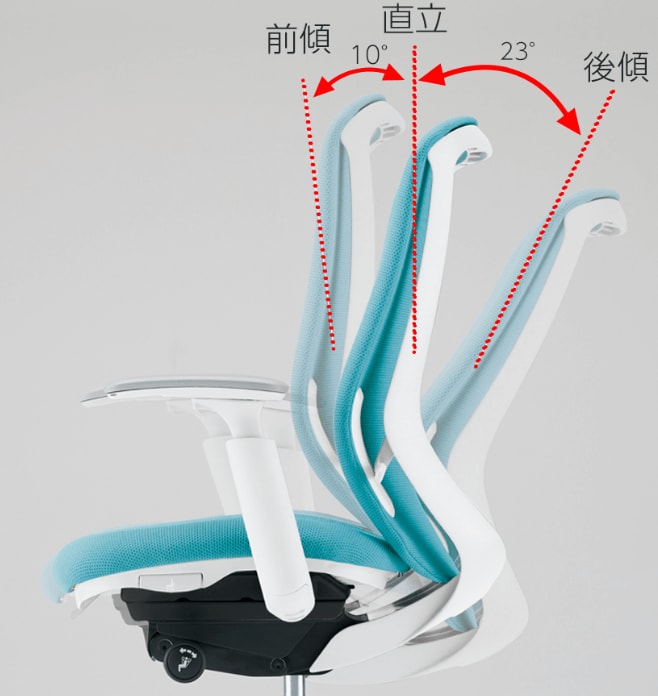 また、前傾機能付背座シンクロリクライニングにより、パソコン作業や筆記作業に適した前傾のポジションが取りやすいのも特徴の一つです。お腹にかかる圧迫感や腰への負担が軽減できます。