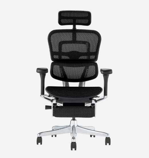 耐久性が高く高級感のあるアルミポリッシュフレームを使用した、エルゴヒューマンプロシリーズのローバックタイプです。全シリーズに搭載している前傾チルト機能によって、正しい姿勢に導き、よりデスクワークに集中できます。