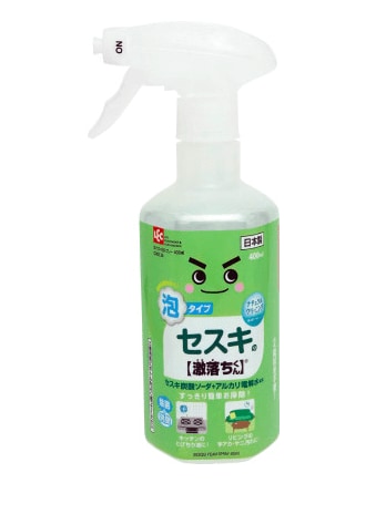 泡タイプのスプレーが汚れに密着し、壁などの傾斜面でも使えます。アルカリイオンの力で汚れを包み込み、浮かせてから落とすのが特徴です。