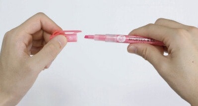 キャップにあるプラスチック製の専用消し具で、引きすぎたラインや間違えた箇所が消せる蛍光ペンです。