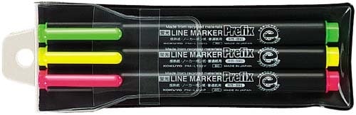 蛍光ペンはマーキングに使うのであれば、2-3色あれば大丈夫です。