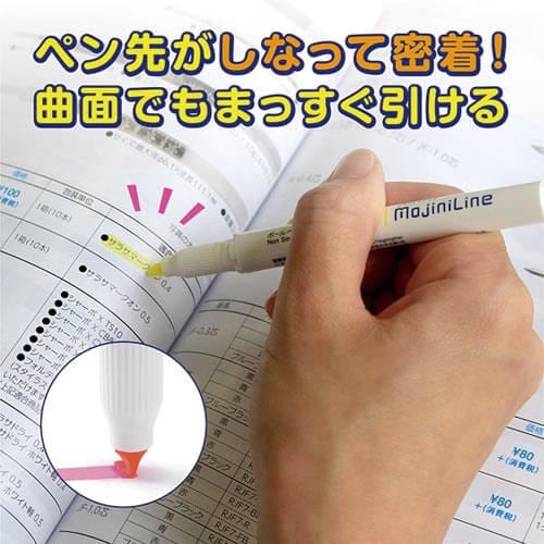 一般的な蛍光ペンとは異なりペン先が細いので、新聞や雑誌の切り抜きのチェックやマーキングにも使えます。