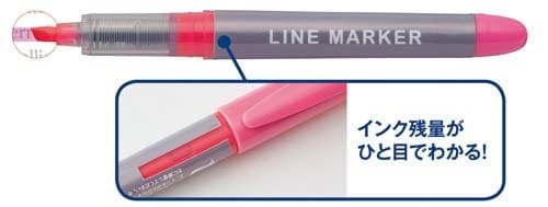 インク残量が分かりやすく、最後までかすれず使える直液式蛍光ペンです。