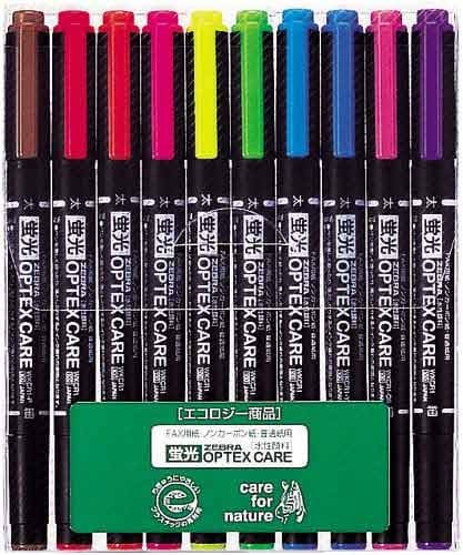 カラーバリエーション豊富で教科ごとに使い分けがしやすい、蛍光ペンの定番「蛍光オプテックス」です。
