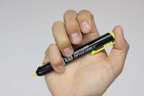 ペン先の中央が透けているので、マーキングしたい文字が見えるようになっています。