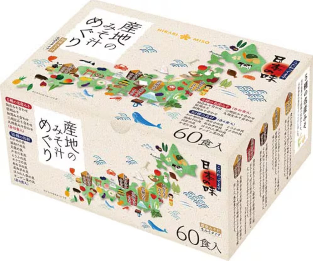 5つの味噌の食べ比べができる、大容量60食入りのインスタント味噌汁です。