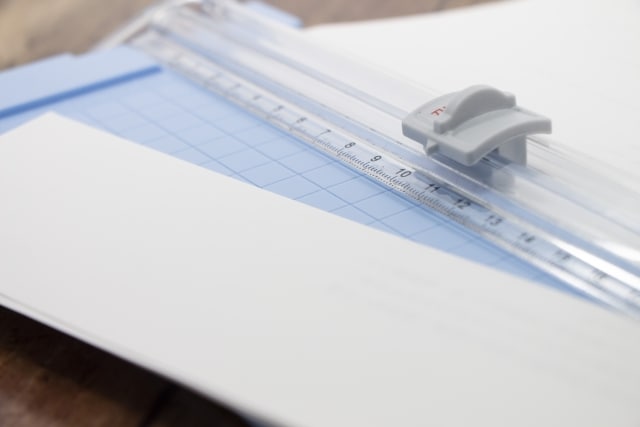 A4用紙を5枚まとめて裁断できる、スライド式の裁断機です。