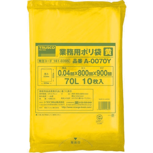 業務用ポリ袋 厚み0.04 A−0070Y チャック付きポリ袋 1袋(10枚入)