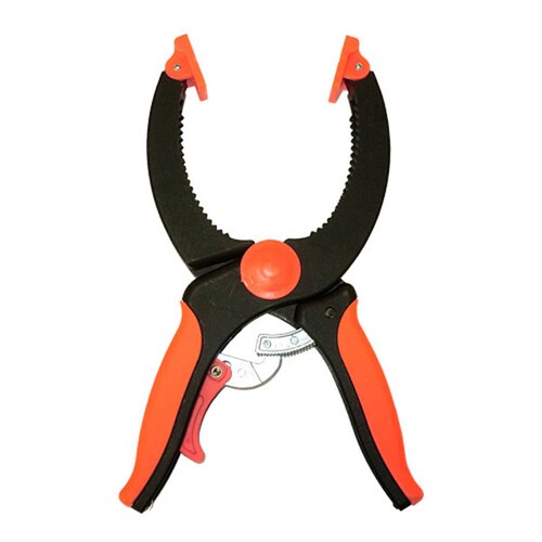 ギアでしっかり締め付けます。クランプ口が動くので多少の不均衡でも止まります。簡単な仮止めや接着止めには役立ちます。 |