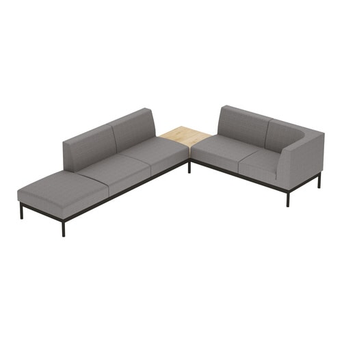 オフィスラウンジに欠かせない、シャープさと風合いを兼ね備えたソファー。くつろいでも姿勢は崩さない。ソロワークに最適な角度設計。ソファーミーティングやリフレッシュエリアに最適なL字型セットです。 |