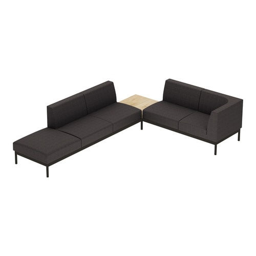 オフィスラウンジに欠かせない、シャープさと風合いを兼ね備えたソファー。くつろいでも姿勢は崩さない。ソロワークに最適な角度設計。ソファーミーティングやリフレッシュエリアに最適なL字型セットです。 |