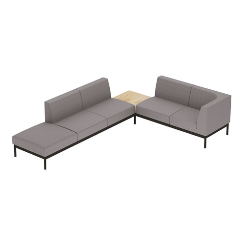 オフィスラウンジに欠かせない、シャープさと風合いを兼ね備えたソファー。くつろいでも姿勢は崩さない。ソロワークに最適な角度設計。ソファーミーティングやリフレッシュエリアに最適なL字型セットです。 |