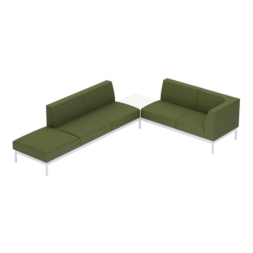 オフィスラウンジに欠かせない、シャープさと風合いを兼ね備えたソファー。くつろいでも姿勢は崩さない。ソロワークに最適な角度設計。ソファーミーティングやリフレッシュエリアに最適なL字型セットです。 |