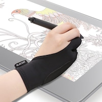 タッチペンやスタイラスでタブレットに絵を描く際の手と画面との摩擦を軽減し、グローブの画面接触部分の非通電パッドが手による誤操作を防止するタブレット、ペンタブレット用誤操作防止2本指グローブです。 |