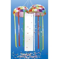留具の付いた紐を引っ張ると留具が外れて、くす玉が割れます。※ご使用の際はあらかじめ付属の紙吹雪をくす玉に入れてください。 |