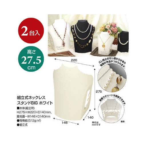 組立式ネックレススタンドBIG ホワイト 本体(組立時)−高さ275mm×幅220mm×奥行140mm,接地面−幅146mm×奥行140mm 1セット(2台袋) 44−5812 小物ディスプレイ