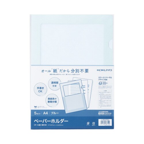 ペーパーホルダー <オール紙> 窓付き ブルー A4 フ−RKM750B 1パック(5枚入)