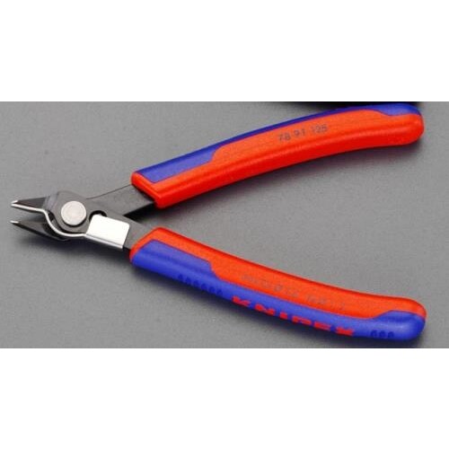 コンフォートハンドル採用の精密斜刃ニッパー、全長125mmで軽量です。硬度HRC64の刃は硬線まで対応、磨き仕上げで快適に作業できます。 |