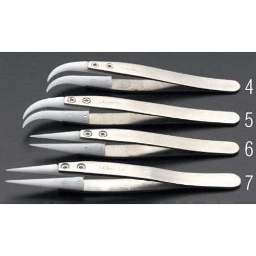 120mmの精密ピンセット、曲がった鋭い先端で細かい作業を支援、デルリンチップと耐熱性能が特徴。 |