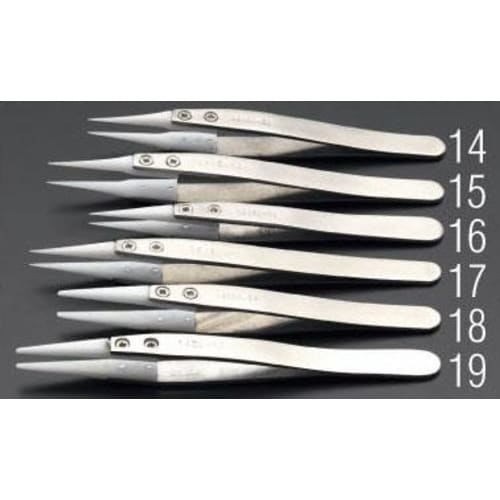110mmの精密用ピンセット、直で鋭い先端幅は0.5mm、240℃の耐熱デルリンチップを採用。 |