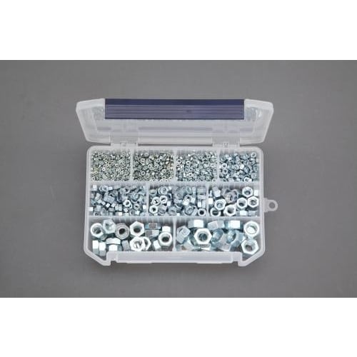 ユニクロメッキの鉄製六角ナットセット、サイズはM2からM12。並目ねじの豊富な入り数、ケース入りで管理に便利です。 |