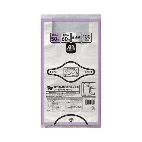 【スーパーセール:通常価格から25%オフ】取り出し口が選べるレジ袋 半透明50号 バイオマスプラスチック 100枚
