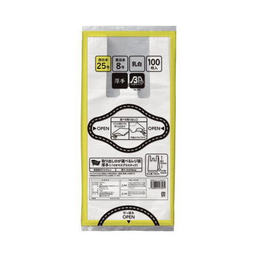 取り出し口が選べるレジ袋 厚口 乳白25号 バイオマスプラスチック 100枚×30 業務用