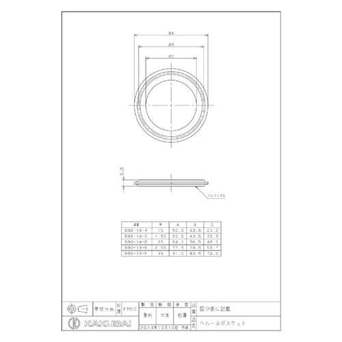 カクダイ 690−14−A ヘルールガスケット/1S #690−14−A 水道配管資材 1個 3511-1610