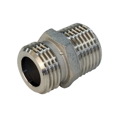テーパーめねじを平行おねじに交換する継手。 |