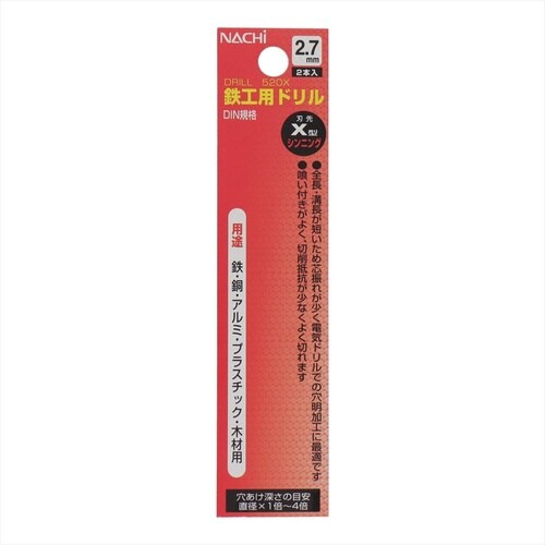 ナチ 鉄工ドリル シンニング 2本入り 2.7mm