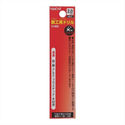ナチ 鉄工ドリル シンニング 5本入り 2.0mm