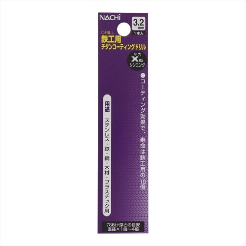不二越 鉄工用チタンコーティングドリル 3.2mm 3.2mm 細軸ドリル 1個 3516-5248
