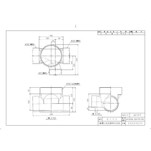 前澤化成工業 前澤 M−90Y右100X75−150 ビニマス90度合流 M−90Y右100X75−150 1個 3519-5559