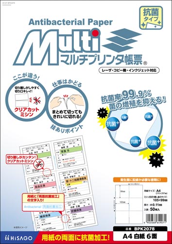 マルチプリンタ帳票 抗菌紙 A4白紙6面 BPK2078
