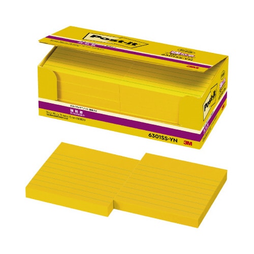 スリーエム ジャパン ポストイット 強粘着75×75ラインノート黄 ビビットイエロー 1箱(10冊入) 6301SS−YN ふせん 強粘着 【3557-5962】