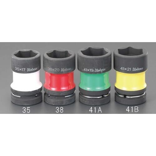 差込角1インチ、サイズ38×20mmのリヤーホイールナットソケット。全長83mm、色は赤。 |